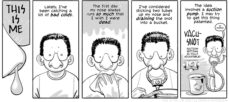 Sorry about this one. However, if you've ever spent an entire day blowing your nose without pause and you ended up feeling like a snot factory, you may recognize the mindset that drives this dark train of thought.